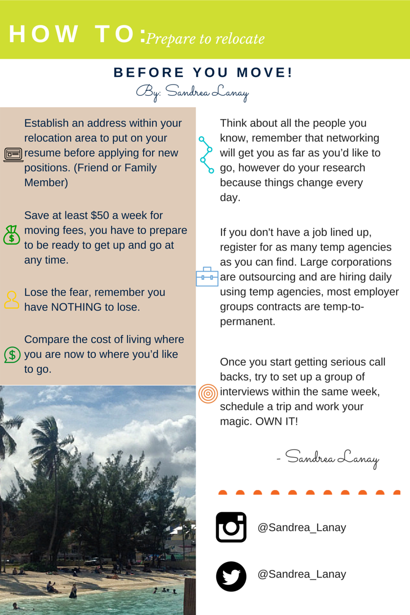 Off and on I always find myself talking to friends expressing my desires of relocating and ironically their feelings are mutual. I think right now I’m in a great place mentally, I have nothing to lose and so much to gain. I created a list for myself a few months ago and I emailed it to a few girlfriends as well so we could get the ball rolling.